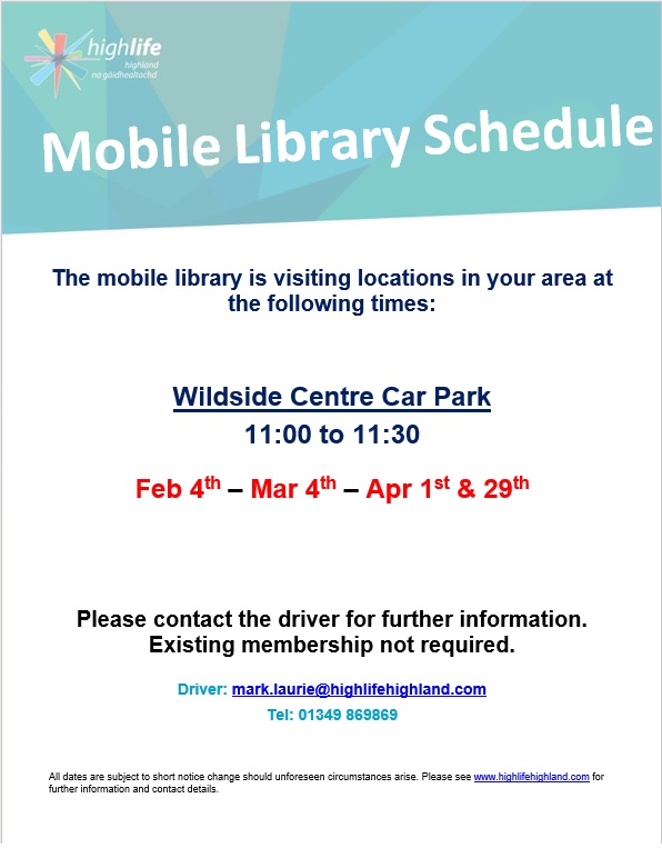 We are lucky to have a Mobile Library service available in our community! If you fancy a new read and would like to give the mobile library a go then please pop along at the dates and times below and meet Mark, our lovely local librarian.